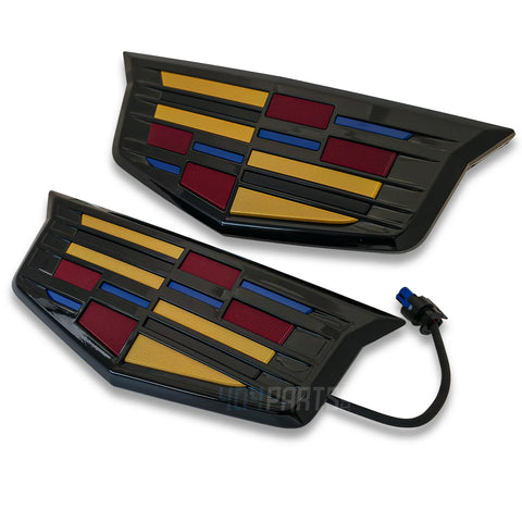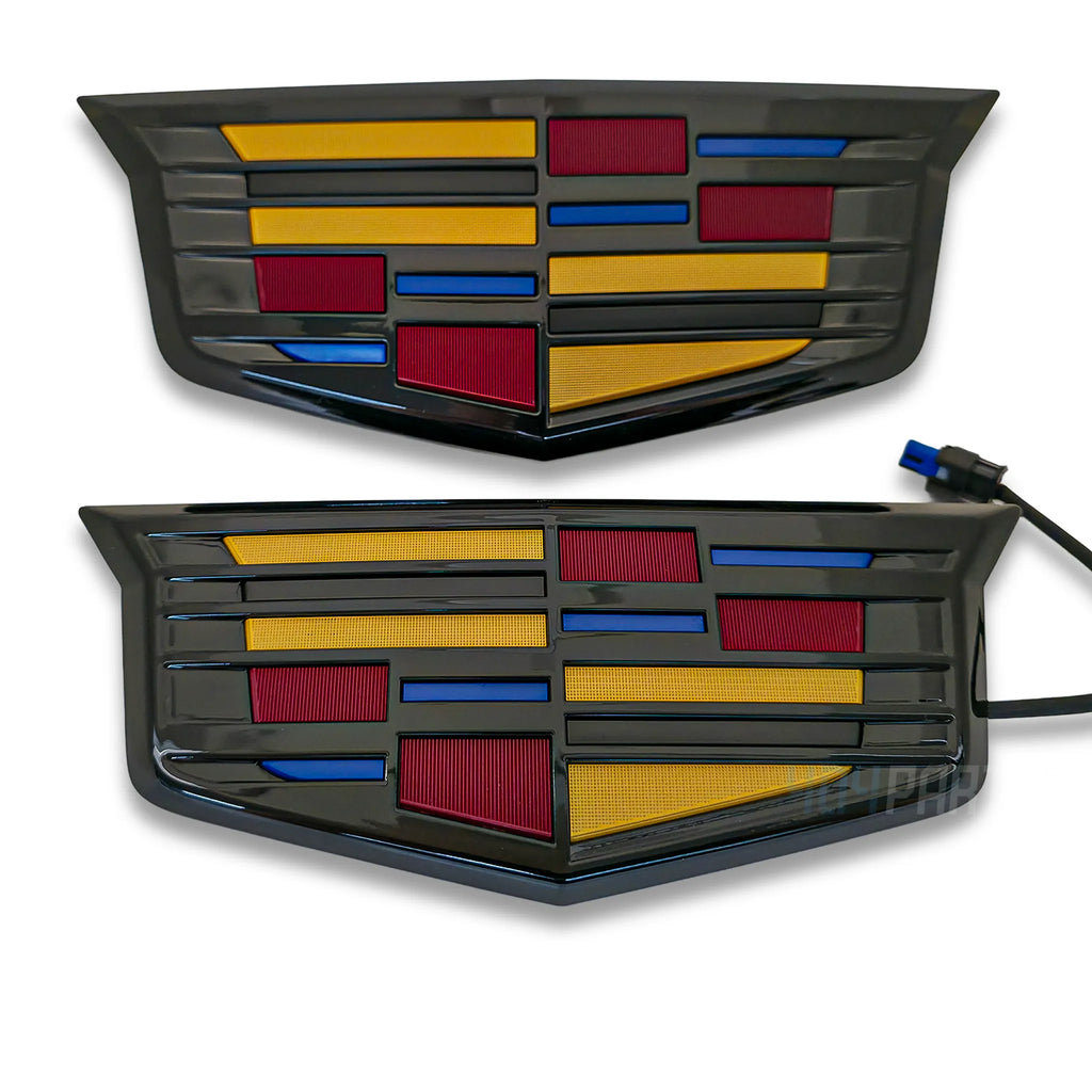 Transform the exterior of your 2025–2026 Cadillac Escalade with our premium Black with Color emblem kit, built from genuine GM components and meticulously refinished in house by our small batch team. This Version 2 (V2) design keeps the classic Cadillac colors while adding a deep, high gloss black surround for a refined, modern blackout appearance. Often Imitated, Never Duplicated.