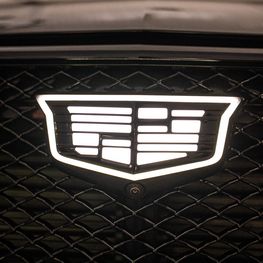 Upgrade your 2020-2025 Cadillac XT6 with the Illuminated Monochrome Front Emblem Kit from 404 Parts. This Cadillac XT6 illuminated emblem upgrade adds a refined lighting signature while delivering a true monochrome appearance during the day.