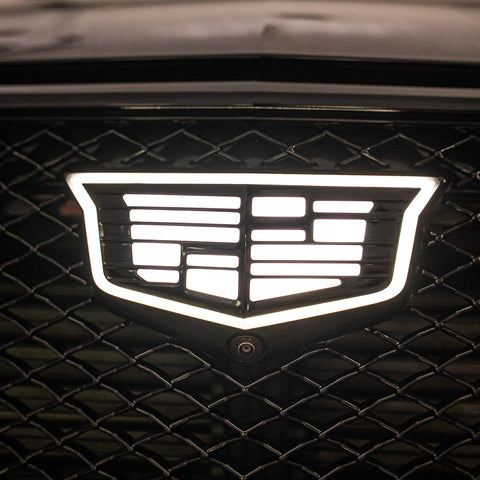 When the lights activate, the emblem performs a smooth start up animation before illuminating with clean white LED light designed to complement Cadillac’s factory lighting. The updated LED array improves brightness, clarity, and overall uniformity for a more refined illuminated appearance.