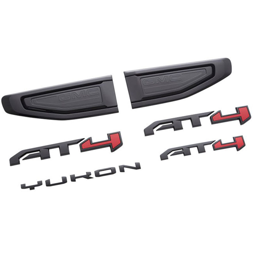 Upgrade your Yukon AT4 with this Genuine GM Blackout Emblem Package and give your truck the finish it should have come with from the factory. These are authentic OEM emblems, not aftermarket replicas, refinished in premium Gloss Black to match the aggressive AT4 styling. Same factory quality. Same precise fit. Just zero chrome.
